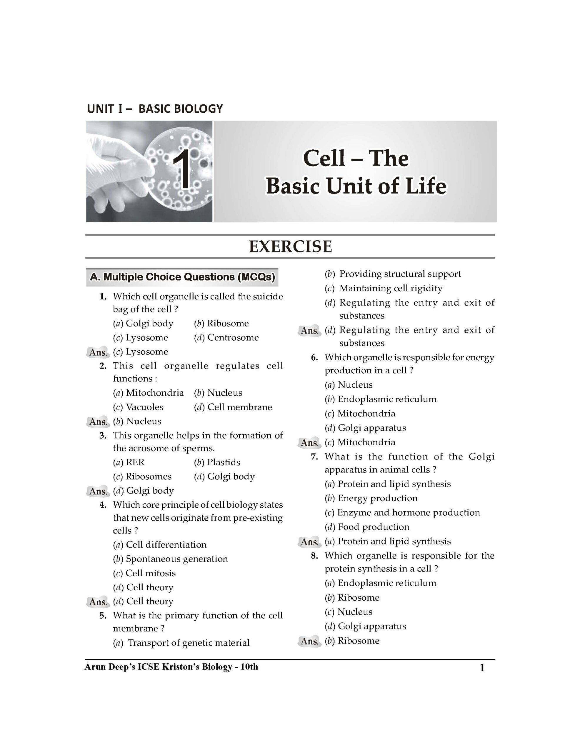 The book provides complete unit-wise coverage of the ICSE Class 10 Biology syllabus: