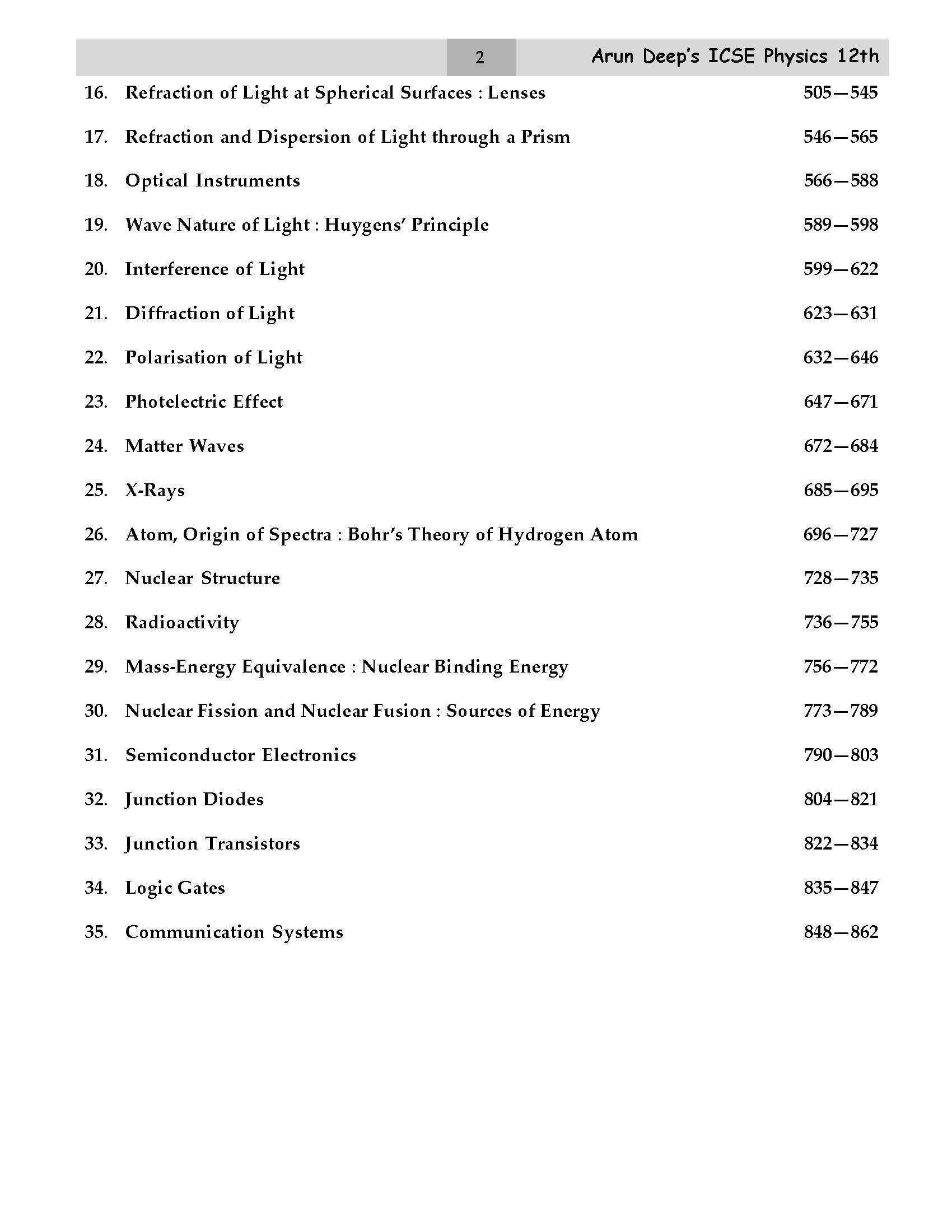 Syllabus of Arundeep Self-Help to ISC Physics Class 12